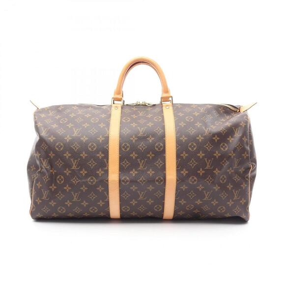 LOUIS VUITTON Brown Monogram Leather Keepall 55 Boston Bag