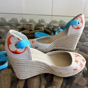 Brand New Without Box, Sexy, LOUIS VUITTON CANVAS MONOGRAM STARBOARD Espadrille Wedge Sandals.