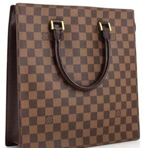 Don't miss out on your opportunity to own this rare and gorgeous Louis Vuitton Damier Canvas Venice Sac-Plat Bag in PM. This chic style has the iconic Damier Ebene canvas, chocolate brown smooth leather handles, and a zip top closure! It features a sleek design that's perfect for carrying all of your daily essentials in a stylish and professional manner.