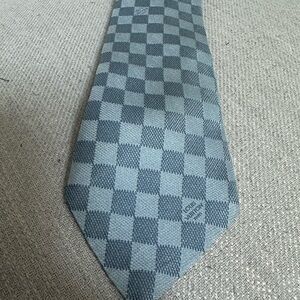 This is a gently used, professional dry cleaned and ironed, authentic LOUIS VUITTON Damier Blue Gingham Men’s Neck Tie. Slight discoloration around the parts circled. Label shown in photo. I am selling items that you can send a bundle offer with. Pet-free and nonsmoking home.