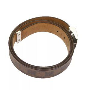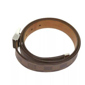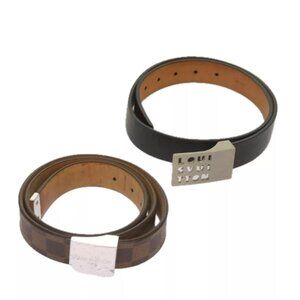 LOUIS VUITTON Damier Ebene Belt Leather 2Set Black LV Auth