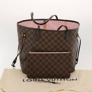 LOUIS VUITTON Damier Ebene Rose Valerine Neverfull MM Totebag N41603
