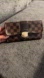 Elegant Louis Vuitton clutch with a brown checkered pattern. Features a sleek design with a gold clasp.