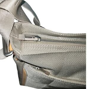 Shoulder strap with silver hardware.