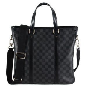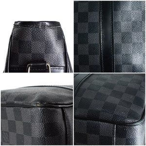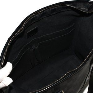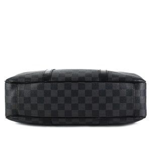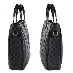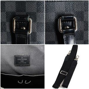 Stay in style even while on the go with this sleek bag crafted from Louis Vuitton's damier graphite canvas. This bag features dual handles, a shoulder strap and plenty of pockets on the inside.
