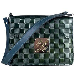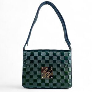 Louis Vuitton Damier Vernis Green Patent Leather Shoulder Bag – Rare Two-Way Vintage Style