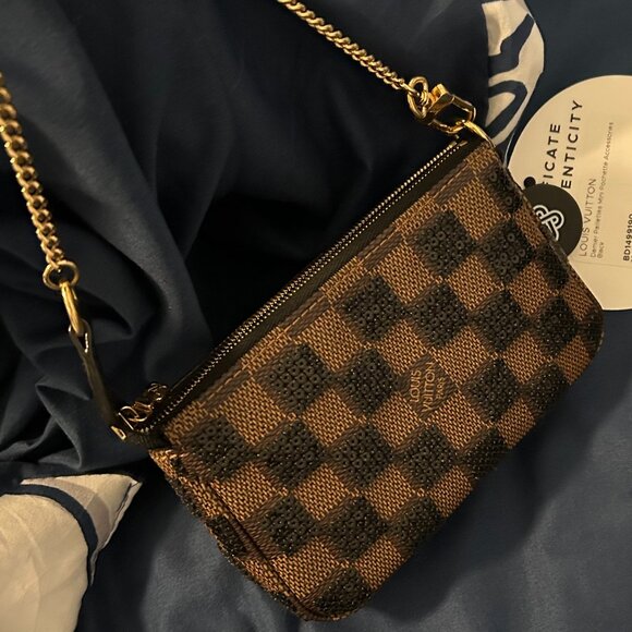 LOUIS VUITTON Damier Paillettes Mini Pochette Accessories Black