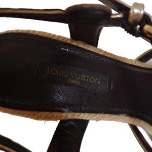 LOUIS VUITTON - Dark Brown Gold Beige Women's Sandals Leather 172-081625