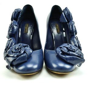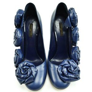 LOUIS VUITTON: Deep Blue/Violet, Leather & Roses Runway Heels/Pumps