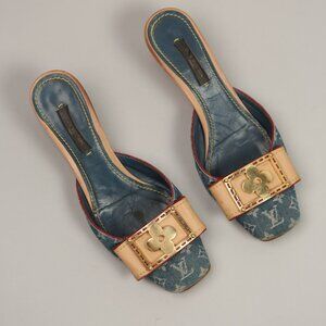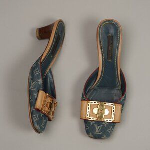 Y2K Louis Vuitton Denim Kitten Heel Mules