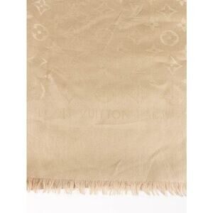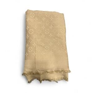 Crafted from a luxurious blend of silk and wool, this shawl is not only ultra-soft and warm but also incredibly stylish. Drape it as an oversized scarf or wrap it around your shoulders for a chic and cozy look. This Louis Vuitton shawl, with its versatile beigey gold hue, effortlessly complements any outfit.