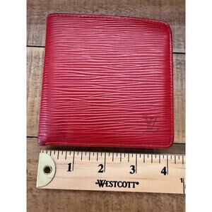 LOUIS VUITTON Epi Leather Bifold Wallet Red Coin Pocket Made in France