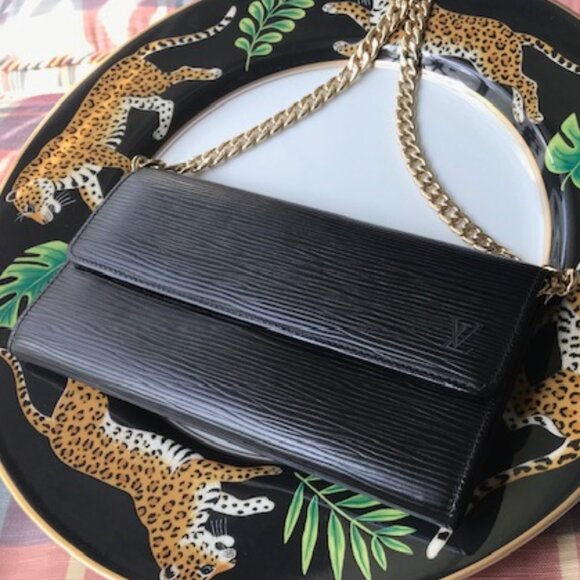 LOUIS VUITTON Epi Long Wallet with LV Logo in Black Leather Authentic Like New