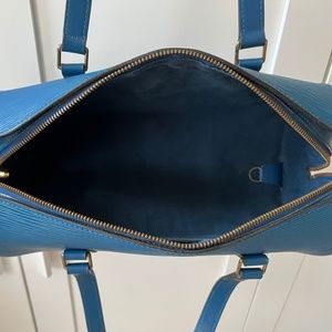 The hardware at the handle bases can be used for a strap, allowing for a cross-body style.