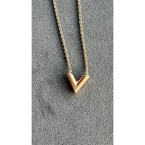 LOUIS VUITTON Essential V Necklace Gold LV Pendant