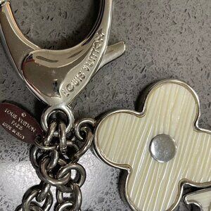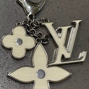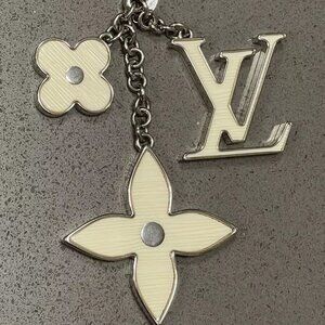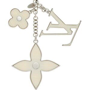 Louis Vuitton Fleur De Epi bag charm featuring silver-tone hardware and Monogram charms with striated white enamel detailing
