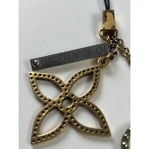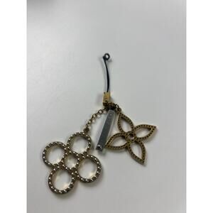 The product is a Louis Vuitton Flower Shaped Telephone Strap Bag Charm Keyring Key Chain. Made in France, this unisex key chain features a gold flower pattern with the brand's iconic logo accents. It serves as a stylish accessory for those who appreciate luxury fashion and craftsmanship, adding a touch of charm to any bag or set of keys. Perfect for adding a touch of elegance to your everyday look.