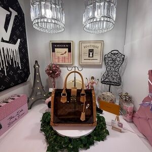 This lovely lady is pre-loved. Does show a call out shown in pix nothing that takes away its chic look. It does come with dust bag key leather clochette is also included. No odors or smells. Bundle & save.