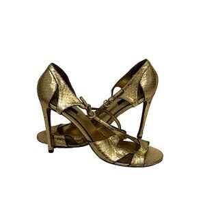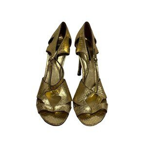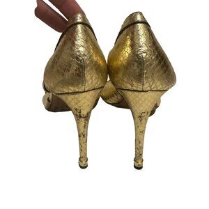 LOUIS VUITTON Gold Snake Print Leather Heels Size 41