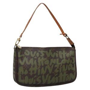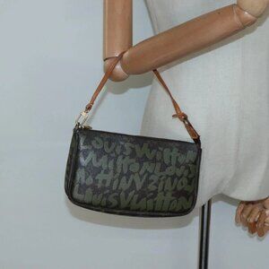 LOUIS VUITTON Graffiti Pochette Accessoires Pouch Khaki M92191 LV Auth bs28566