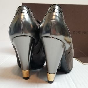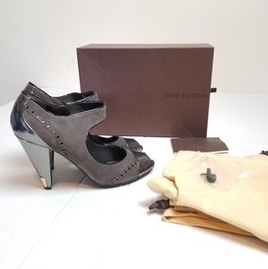 LOUIS VUITTON Gray Suede Maryjane Heels