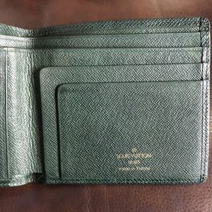 LOUIS VUITTON Green Taiga Leather Bifold Wallet