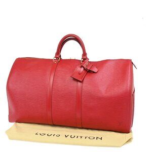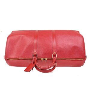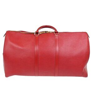 LOUIS VUITTON Keepall 55 LV Logo Travel Hand Bag Epi Leather Red