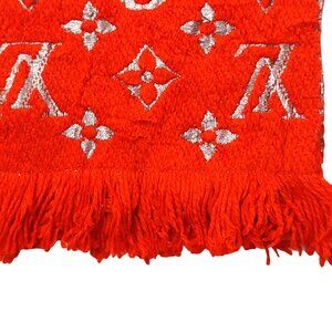 LOUIS VUITTON LV Classic Vintage Red & Metallic Silver Monogram Scarf VWT