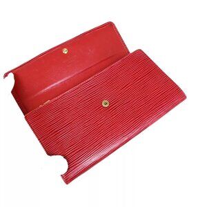 LOUIS VUITTON LV Logo 2 Set Bifold Long Wallet Epi Leather Red Ruby 61KA294
