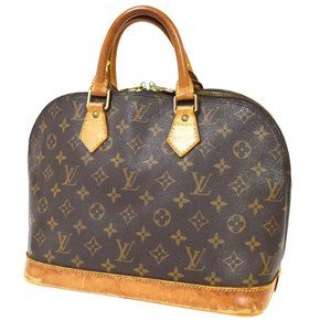 LOUIS VUITTON LV Logo Alma Hand Bag Monogram Leather Brown France M51130 31JF780