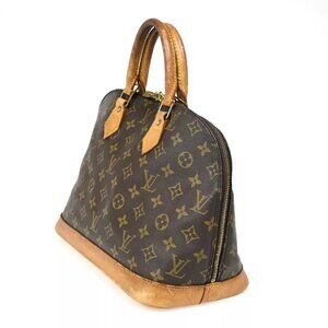 LOUIS VUITTON LV Logo Alma Hand Bag Monogram Leather Brown France M51130 33YE407