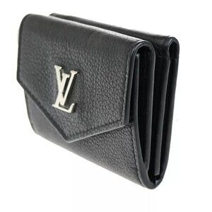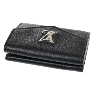 LOUIS VUITTON LV Logo Lock Mini Trifold Wallet Calf Leather Black M63921 33FB238