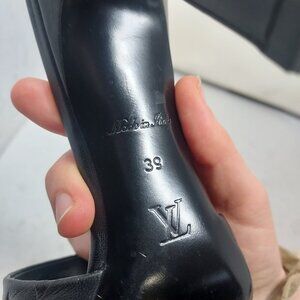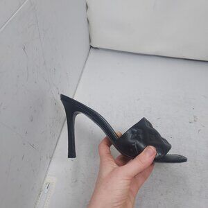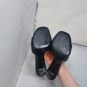 LOUIS VUITTON LV Monogram Black Embossed Revival Heel Sandal