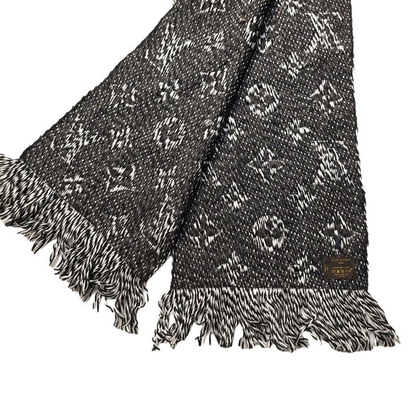 LOUIS VUITTON LV Rare Vintage Black & White Monogram Scarf