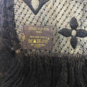 LOUIS VUITTON LV Vintage Black & Gold Monogram Scarf Scarves