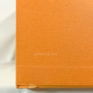 Authentic LV suitcase-style foldover gift box in their "Imperial Saffron" emblematic color with name on one side in navy blue. Features (1) cotton ribbon handle on the top and has magnetic box closure. Folds flat to facilitate transport.