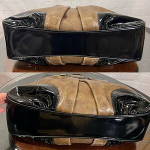 The shoulder strap has minor creasing as well as faint signs of wear.
