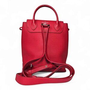 This gorgeous Louis Vuitton Lockme backpack is a standout piece crafted in supple grained calfskin leather in an eye-catching Rubis red. The structured yet soft silhouette is both stylish and functional, with a modern design that effortlessly blends casual luxury with classic LV sophistication.
