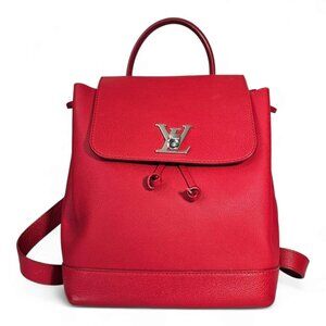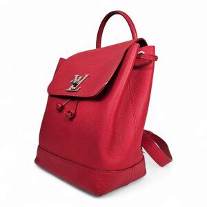 LOUIS VUITTON LockMe Backpack Rubis Red Taurillon Calf Leather Bag Tote LV Auth
