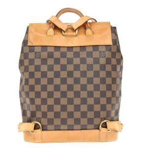 LOUIS VUITTON Logo Arlequin Backpack Bag Damier Ebene Brown