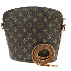 LOUIS VUITTON Logo Drouot Shoulder Bag Monogram Leather Brown