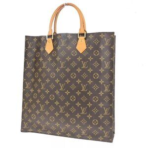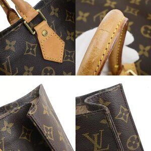LOUIS VUITTON Logo Sac Plat Hand Tote Bag Monogram Leather Brown