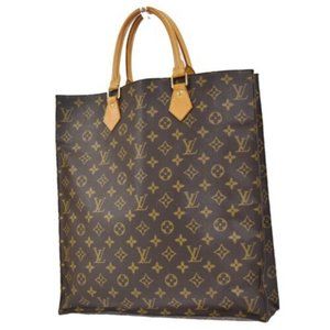 LOUIS VUITTON Logo Sac Plat Hand Tote Bag Monogram Leather Brown M51140 38SG213