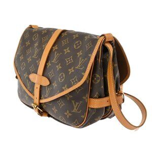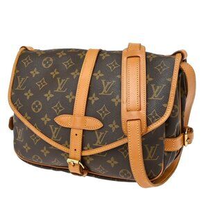 LOUIS VUITTON Logo Saumur 30 Shoulder Bag Monogram Leather Brown