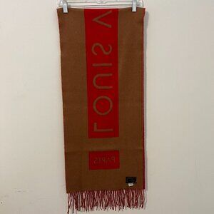 LOUIS VUITTON Logo Scarf Wrap Shawl Cashmere Camel Red Mint Condition