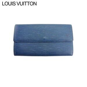 ◆LOUIS VUITTON◆LOUIS VUITTON◆Long wallet with zipper wallet◆Women's men's pochette Porte Mone Credit◆Epi◆Blue gold◆Epi leather◆[Used]◆T22489