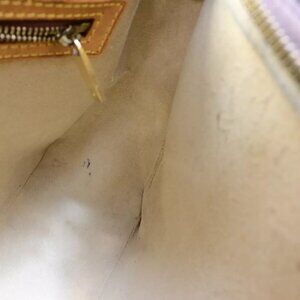 ( Handle and monogram leather have cracks. Handle has been loose shaped. Inside has fluffing. Please check a photograph and the text carefully. )