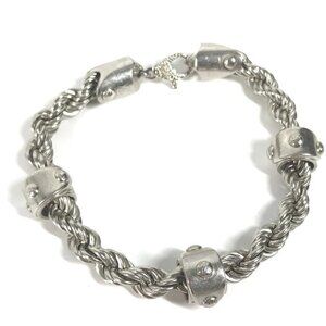 PRODUCT INTRODUCTION: The masculine accessory "Bracelet LV Rope" is made from solid aged silver-colored metal, highlighting the Maison's traditional codes.