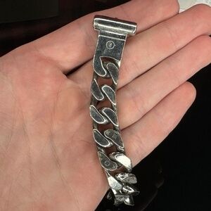 LOUIS VUITTON M68273 Brass Metal LV Chain Links M Bracelet Silver Unisex Z000621