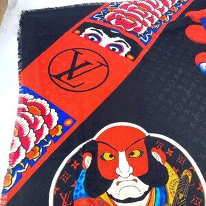 LOUIS VUITTON MP1944 Kabuki Yamamoto Hirosai Monogram Large Stole/Shawl Scarf